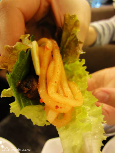 韓牛燒肉也是韓劇中很常出現的一道料理,將烤好的肉包在菜裡面,然後大口咬下,烤肉香與菜的新香讓料理美味卻不油膩。
