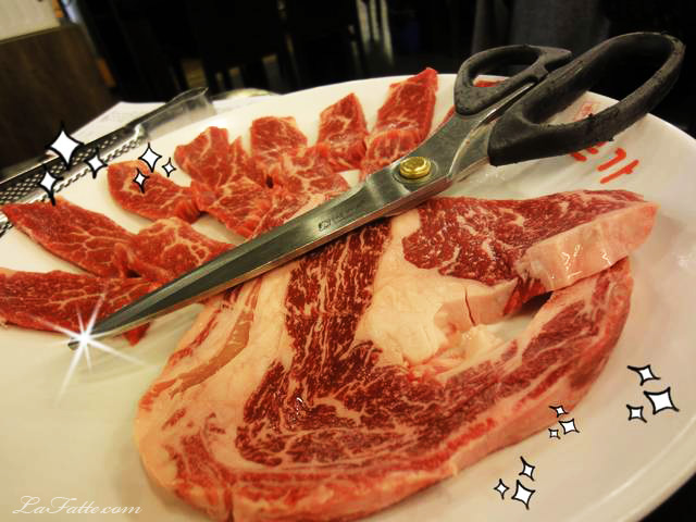 「韓牛」上桌時都會有一把大剪刀隨附,主要是在牛肉烤好時將牛肉塊分切時使用。